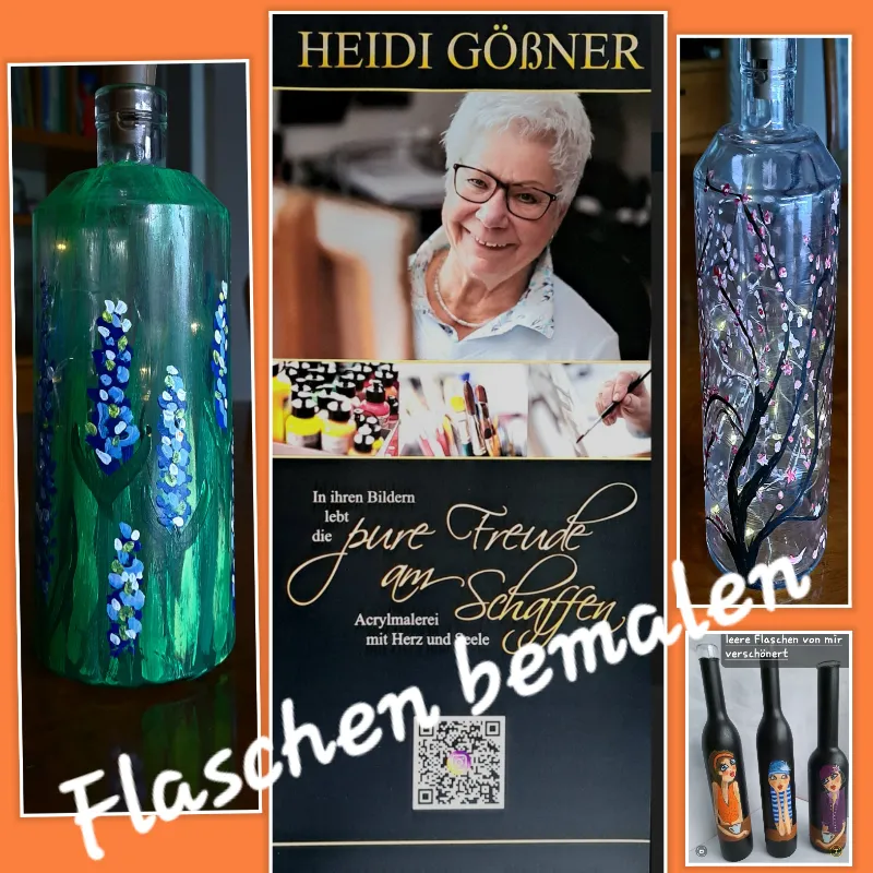 An zwei Nachmittagen werden Flaschen dekorativ mit Acryl bemalt!