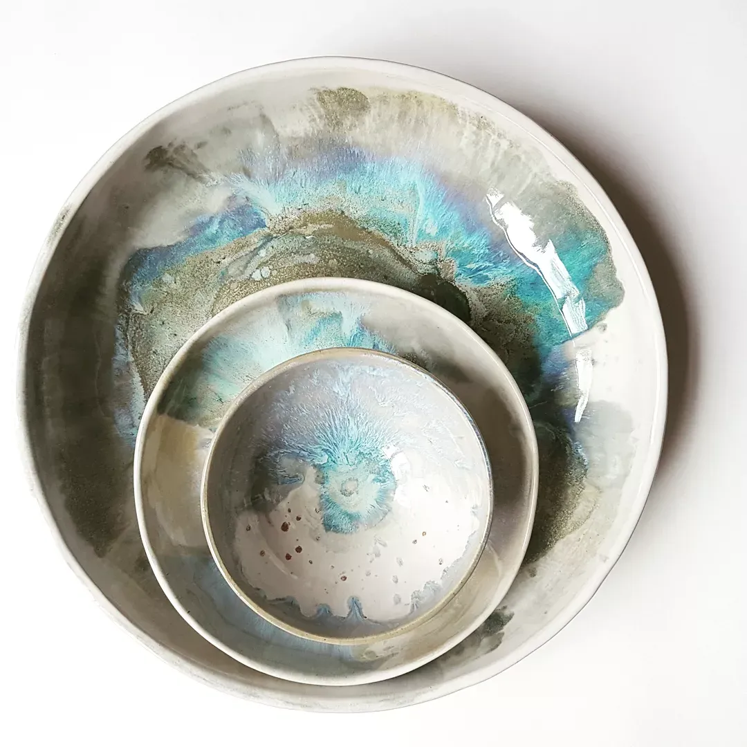 Meine Skulpturen, Gefäße und Gebrauchskeramiken entstehen parallel zur Malerei, passend glasiert oder handbemalt ergeben sie eine Einheit und ergänzen sich mit ihr.