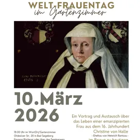 Dieser Sondertermin der Reihe "Frauenleben – Frauenspuren" im Rahmen des Jubiläums „500 Jahre Heinrich Rantzau“ findet außnahmsweise nicht im KulturHaus REMISE, sondern im Gartenzimmer des WortOrts ( Eingang über Stadtbücherei oder über den Seminarweg) statt.