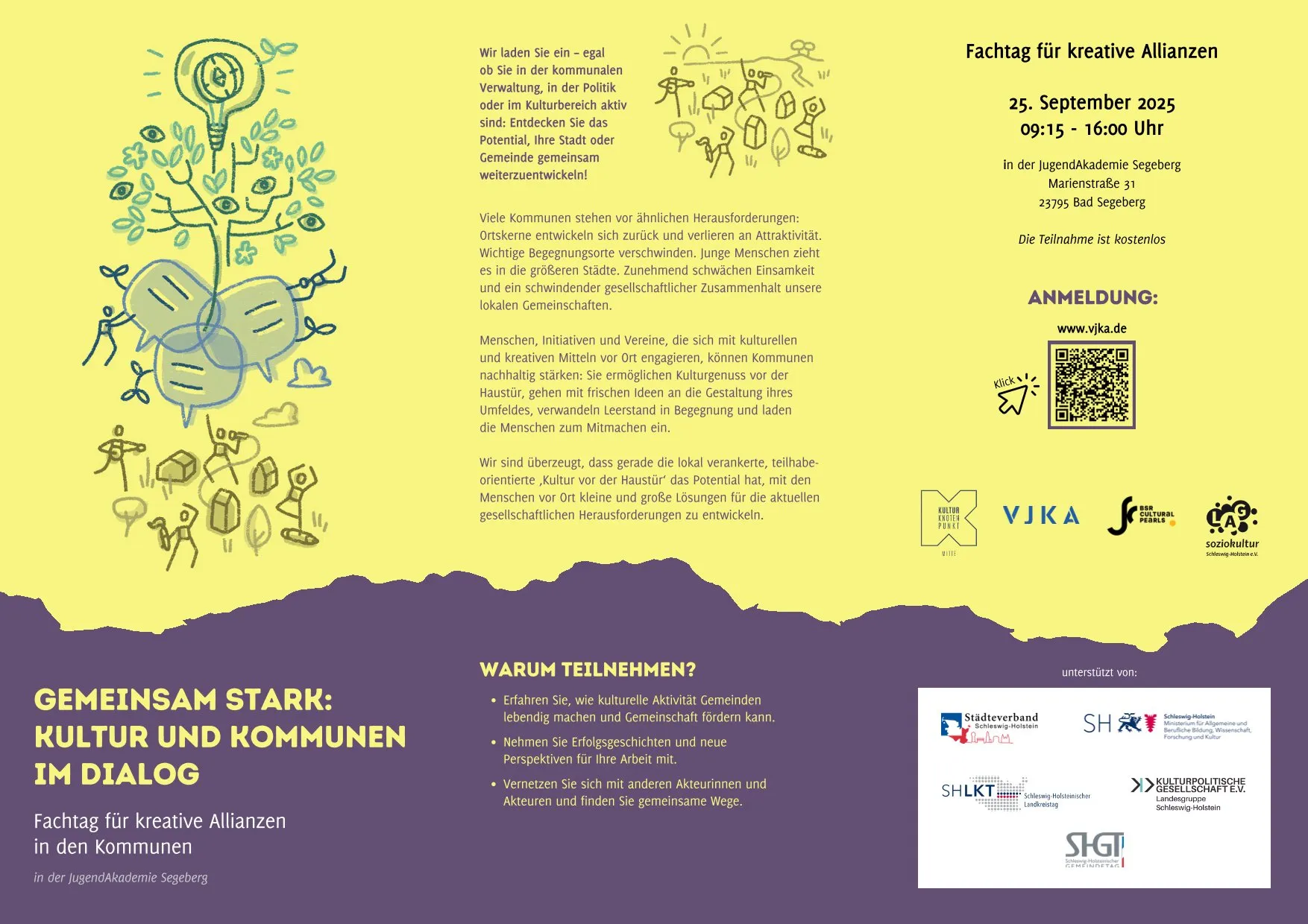 Auf unserem Fachtag am 25. September in der JugendAkademie Bad Segeberg bringen wir Kulturakteur*innen und kommunale Gestalter*innen und Entscheider*innen aus Politik und Verwaltung zusammen, um:
