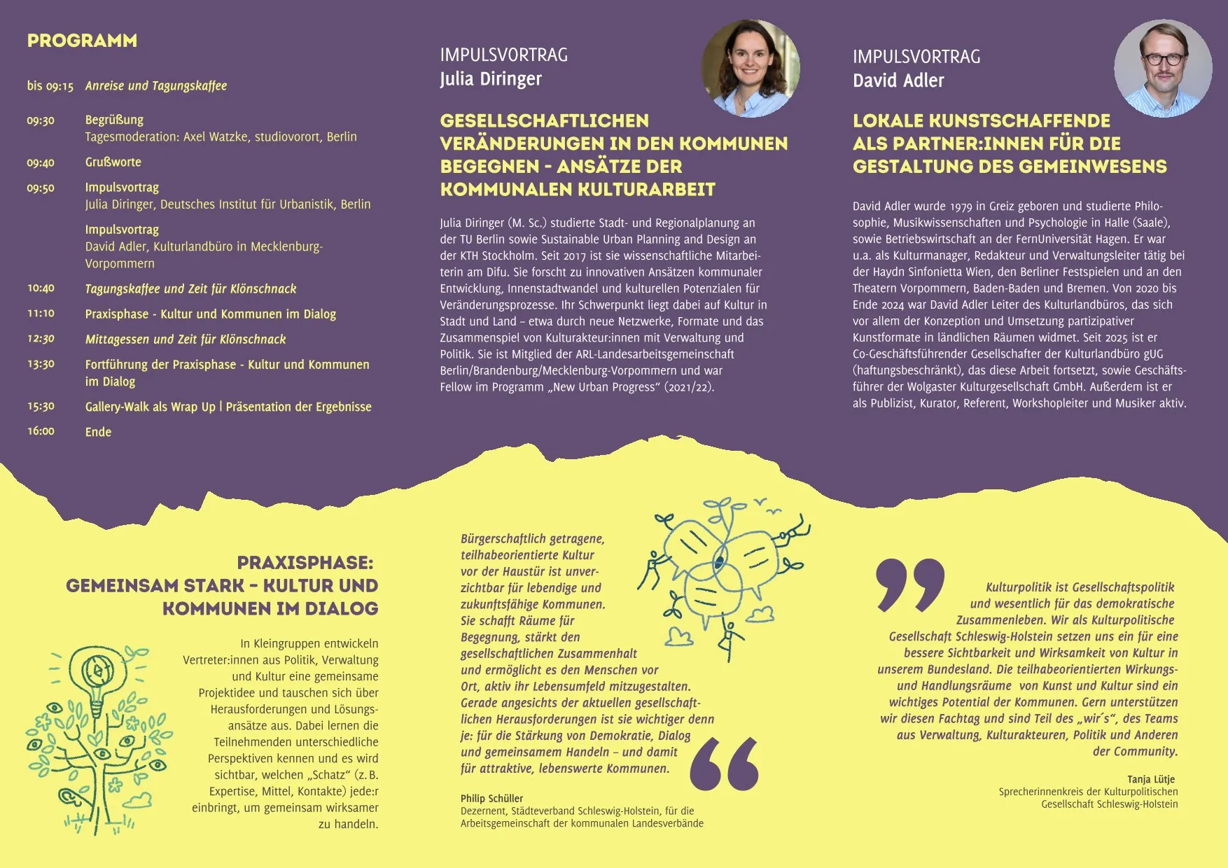 Neben spannenden Impulsen zur Kultur vor der Haustür als Treiber für kommunale Entwicklung erwartet Sie die Gelegenheit, eine Projektidee beispielhaft mitzuentwickeln.